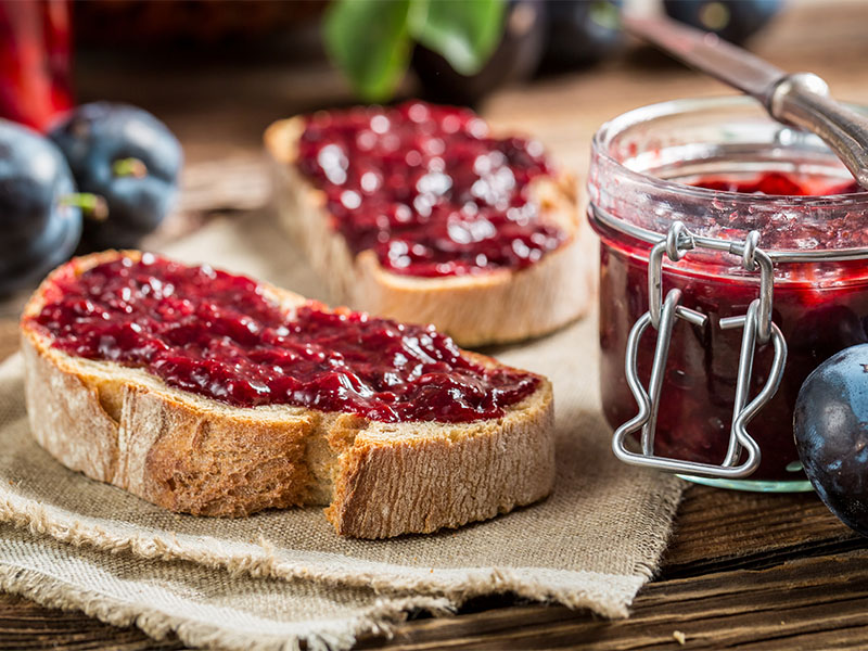 Ekmek dilimlerini fırın tepsisine dizin. Üzerine reçel sürün. Yumurta ve sütü çırpıp üzerine gezdirin. 180°C’de hafif kızarana kadar pişirin.