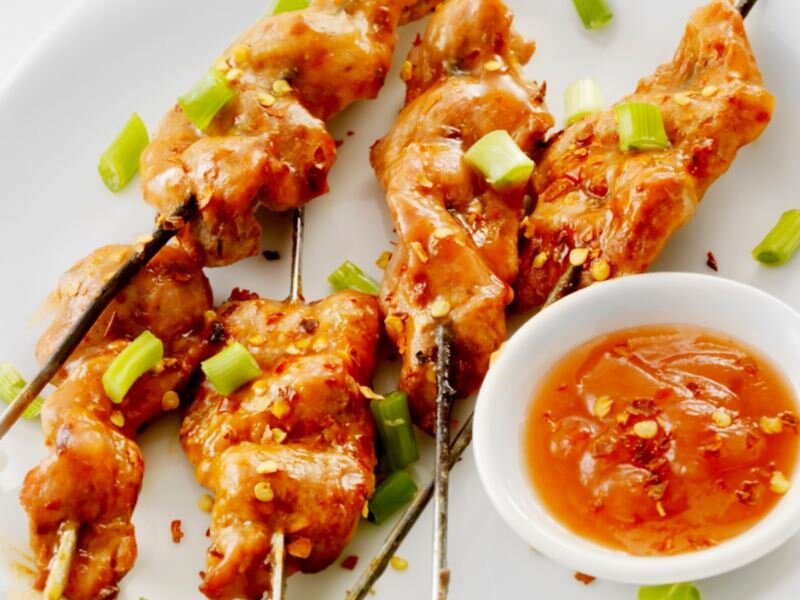 Yapılışı: Sos malzemelerini karıştırın. Tavuğu baharatlarla marine edip 2-3 saat dinlendirin. Tavuk parçalarını şişte pişirdikten sonra, hazırladığınız sosla birlikte servis edin.
