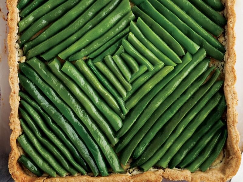 Taze fasulyeyi sadece yemeklerde değil, tart yapımında da tercih edebilirsiniz. Tart dolgusu için, krema, tuzsuz peynir ve maydanoz kullanabilirsiniz. Şık bir sunum için, fasulyeleri çaprazlamasına yerleştirebilirsiniz.