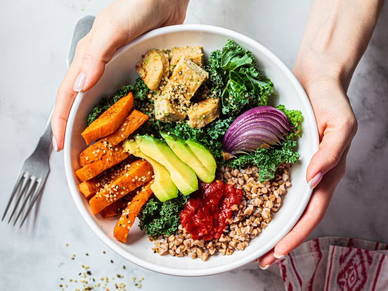 Et, süt ürünleri ve diğer hayvansal ürünleri ortadan kaldırmak kilo vermenize ve kolesterolünüzü düşürmenize yardımcı olabilir çünkü bunlar bitki bazlı yiyeceklerden daha fazla yağ ve kalori içerir. Veganların vücut kitle indeksi ve kan basıncı daha düşüktür.