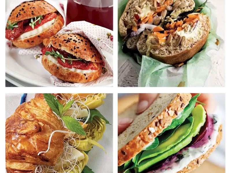 Gouda, kaşar, İzmir tulum, camembert , rokfor, brie, gravyer gibi farklı peynir çeşitleri, kurutulmuş domates pesto, hardal sos, acuka, karamelize soğan, ceviz ve mikro filizler ile değişik lezzette kruvasan sandviçler hazırlayabilirsiniz.