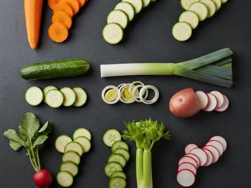 Vichy doğrama, genellikle silindirik veya uzun yapılı sebzeler için uygundur.