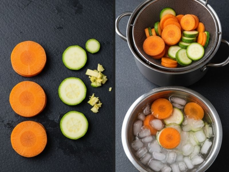 - Pişirme sırasında sebzelerin rengini korumak için kısa süre haşlayıp hemen soğuk suya alınabilir (blanching yöntemi).