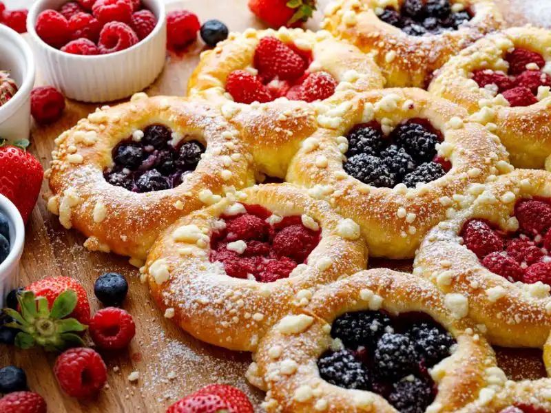 Yılbaşı sofralarında hem lezzetli, hem de renkli bir sunum hazırlamak istiyorsanız rus çöreği tam size göre. Hazırladığınız çöreğin üzerini frambuaz, böğürtlen ve çilek gibi orman meyveleri ile süsleyebilirsiniz.