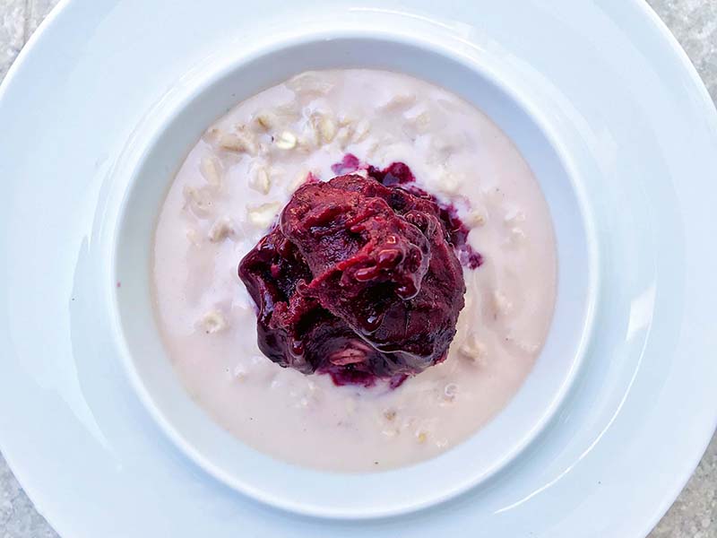 Karadut ve limon suyuyla hazırlanan sorbe, ilk olarak dondurucuda bekletilir. Bu esnada yulaf, badem sütü, çikolata ve karadut blenderdan geçirilir. Sorbe tamamen soğuyunca üzerine dökülerek servis edilir.