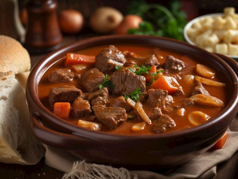 Ocağı kısın ve etler hafif yumuşayınca havucu ekleyip 10 dakika daha pişirin. Ocaktan alıp tuzunu ekleyin ve harmanlayın. Maydanozla süsleyip sıcak olarak servis yapın.