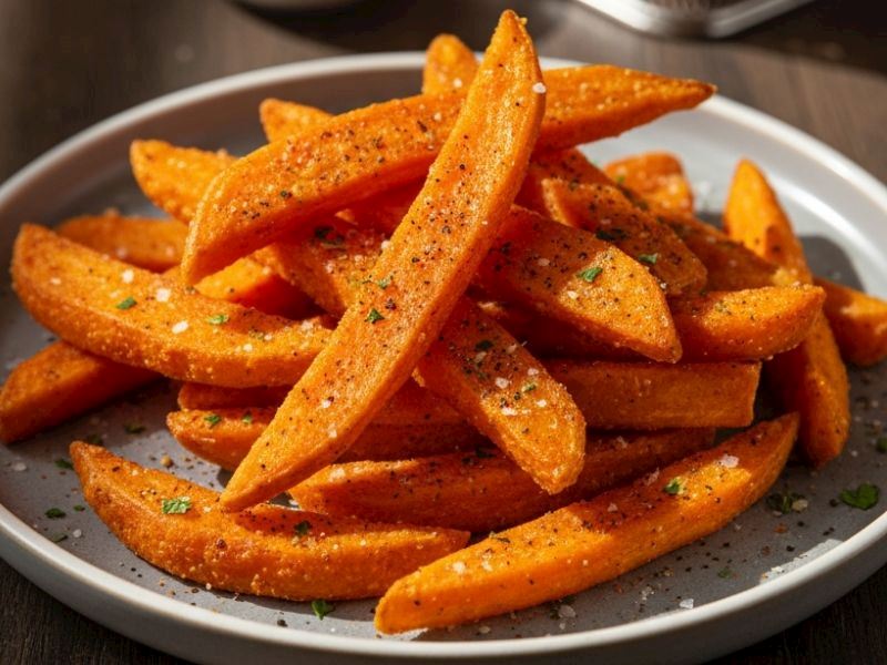 Çıtır ve lezzetli bir atıştırmalık arıyorsanız, baharatlı tatlı patates kızartması tarifi tam size göre. Bu baharatlı tatlı patates kızartması tarifi, tatlı patatesin doğal lezzeti ile tuz, sarımsak ve cajun baharatlarının mükemmel uyumunu sunar, hem pratik hem de sofralarınıza renk katar. Akşam yemeklerinin yanına, öğle atıştırmalıklarına veya misafir sofralarına rahatlıkla ekleyebileceğiniz bu tarif, kısa sürede hazırlanabilir ve her porsiyonda eşsiz bir lezzet deneyimi sağlar. Bir porsiyon baharatlı tatlı patates kızartması kaloridir. Peki; baharatlı tatlı patates kızartması nasıl yapılır? İşte tarifi ve malzemeleri...