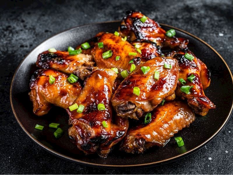Bir porsiyon teriyaki soslu tavuk kanat 450 kaloridir.