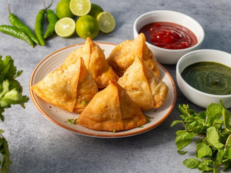 Bir porsiyon baharatlı samosa 300 kaloridir.