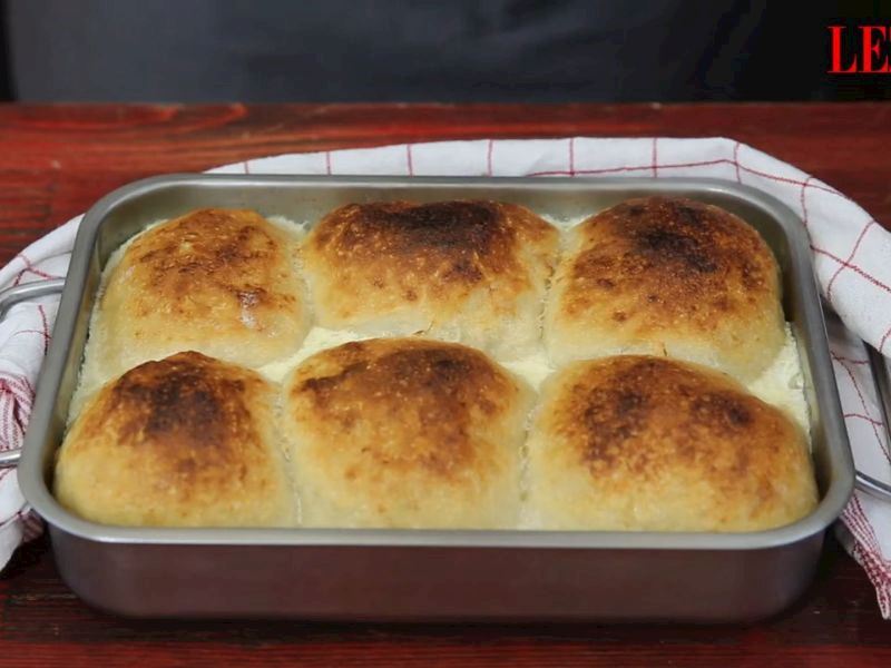 Fırını 180 derecede ısıtın. Bayat ekmekleri küçük küpler şeklinde kesin. Fırın tepsisini yağlayıp un serpin. Ekmek parçalarını tepsiye yayın. Yumurtaları bir kaseye kırıp çırpın.