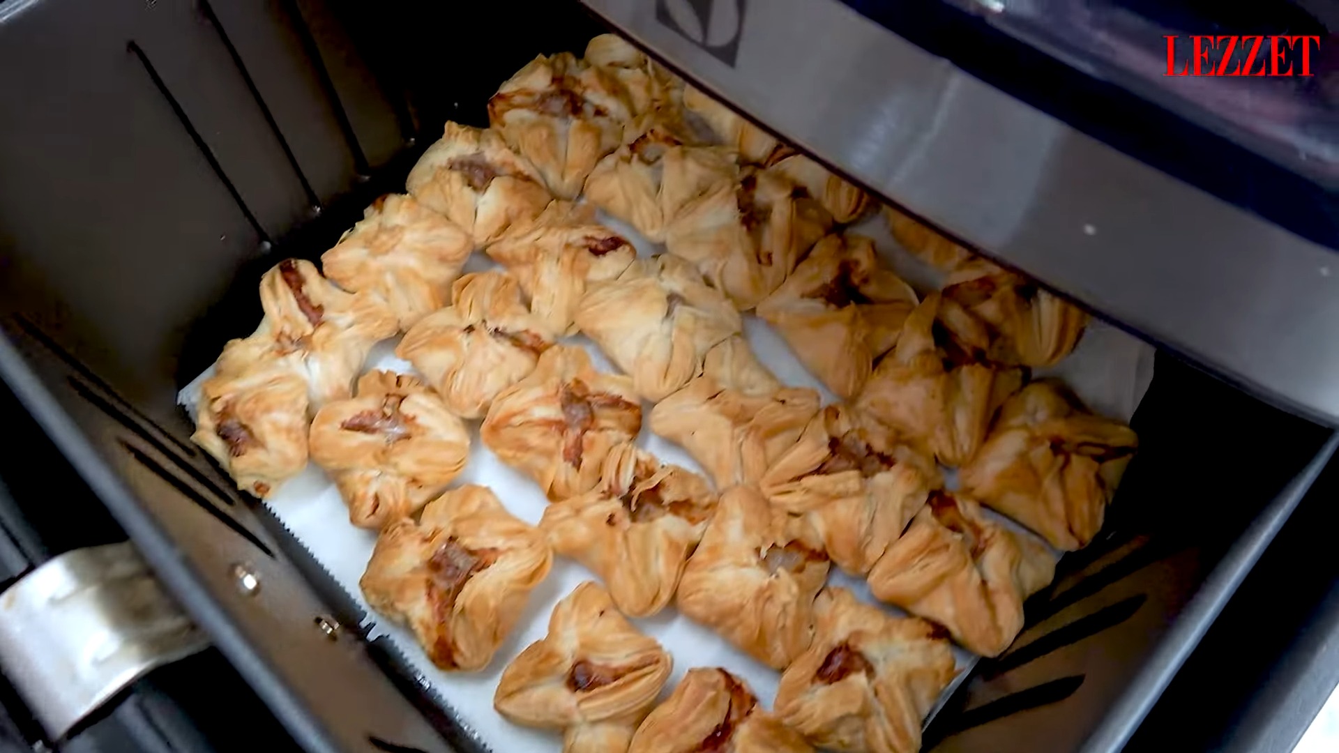 Air fryer'da pastırmalı mini pide ve air fryer'da kıymalı poğaça tarifine göz atmayı unutmayın.