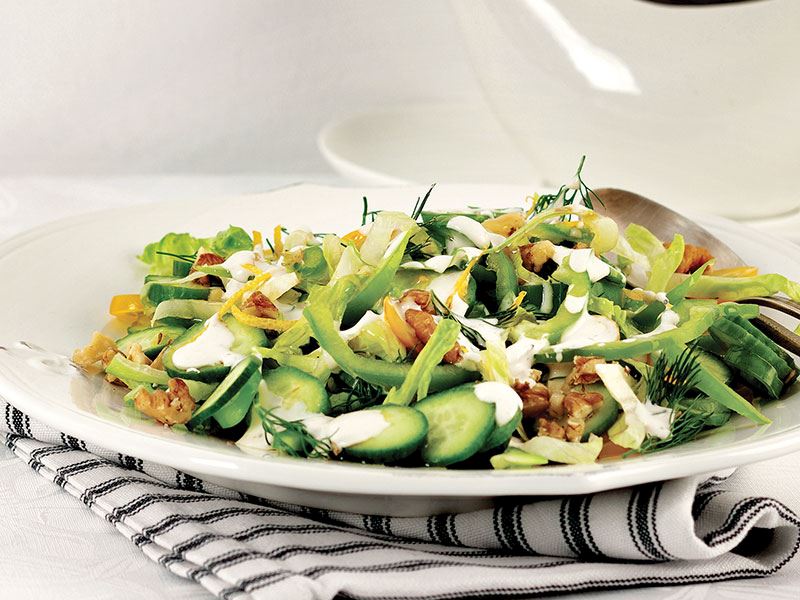 Dereotu dalları ve ceviz içleriyle süsleyip servis yapın.