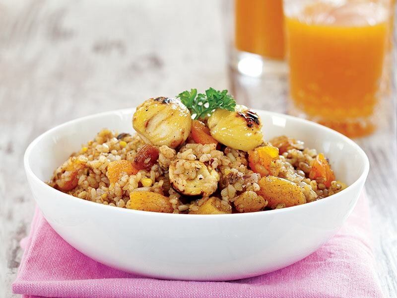 Su kaynayınca bulguru ve kestaneleri ilave edin. Tencerenin kapağını kapatıp 3-4 dakika orta daha sonra kısık ateşte suyunu çekene kadar pişirin.