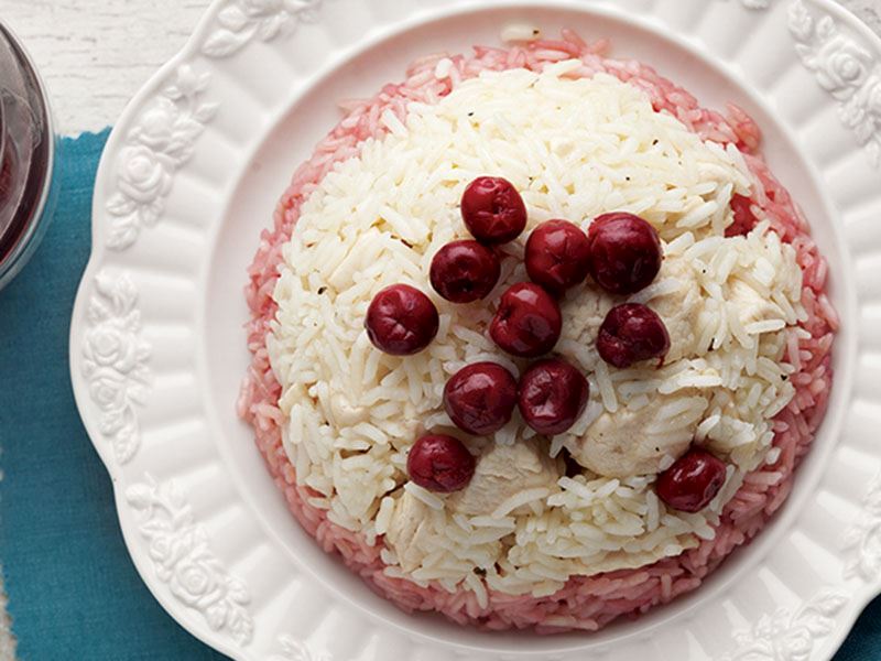 - Vişnelerin çekirdeklerini çıkartıp, kalan şekeri ilave ederek ocakta bir iki dakika pişirin. Pilavın üzerine vişneleri yerleştirin.