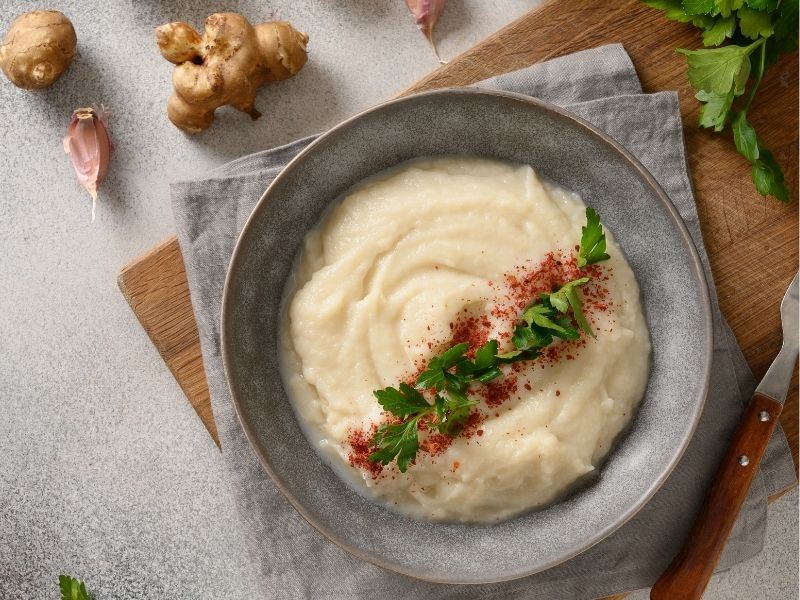 Kış sofralarının hem hafif hem de aromatik garnitürü olarak öne çıkan yer elması püresi tarifi, doğal ve kremamsı dokusuyla yemeklerin yanında mükemmel bir uyum sağlar. Pürenin tadını ön plana çıkaran basit malzemelerle hazırlanan bu yer elması püresi tarifi, hem hızlı hem de lezzetli bir alternatif sunarak sofralarınıza sofistike bir dokunuş katıyor. Peki; yer elması püresi nasıl yapılır? İşte tarifi ve malzemeleri...