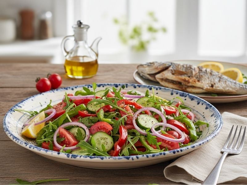 Balık yemeklerinin yanında ferah ve hafif bir eşlikçi arıyorsanız, işte size nefis bir balık salatası tarifi. Taze sebzeler ve zeytinyağı ile hazırlanan bu salata, hem lezzetli hem de sağlıklı bir seçenek sunar. Balığın yanında ideal bir denge sağlayan balık salatası tarifi, sofralarınıza renk ve tazelik katarken, her lokmada çıtır dokusu ve ferah aromasıyla damaklarda unutulmaz bir tat bırakır. Peki; balık salatası nasıl yapılır? İşte tarifi ve malzemeleri...