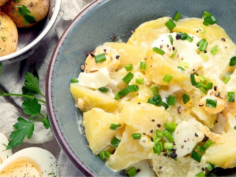 Yumurtalı Patates Salatası; Kahvaltıdan akşam yemeğine her öğüne yakışan, pratik ve doyurucu bir lezzet: Yumurtalı Patates Salatası! Haşlanmış patatesin yumuşak dokusu, yumurtanın besleyici katkısı ve taze yeşilliklerin ferah aromasıyla birleşerek nefis bir uyum oluşturuyor. İşte yumurtalı patates salatası yapılışı, tarifi ve malzemeleri: