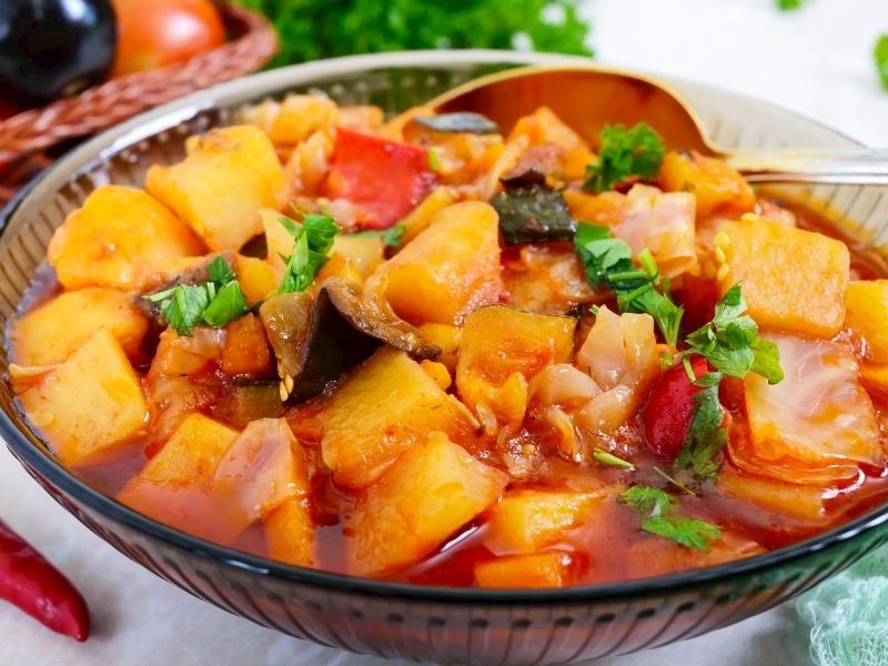 Bir porsiyon sebzeli türlü 210 kaloridir.