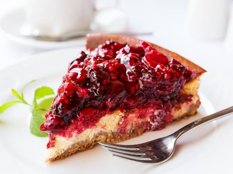 Bir porsiyon Vişneli ve frambuazlı cheesecake 472 kaloridir.