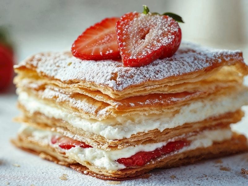 Özel günlerin ve davetlerin gözdesi olan çilekli Napolyon pasta tarifi, çıtır milföy katları ve kremasıyla hem göze hem de damağa hitap ediyor. Evde kolayca hazırlayabileceğiniz bu tarif sayesinde misafirlerinizi veya ailenizi şaşırtabilir, tatlı keyfini zirveye taşıyabilirsiniz; hafif meyve aromasıyla da dikkat çeken çilekli Napolyon pasta tarifi, krep, tatlı veya kahve saatleri için harika bir seçenek sunuyor. Peki; çilekli napolyon pasta nasıl yapılır? İşte tarifi ve malzemeleri...
