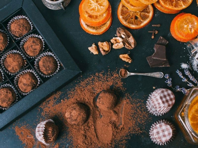 Bir porsiyon portakallı trüf 150 kaloridir.